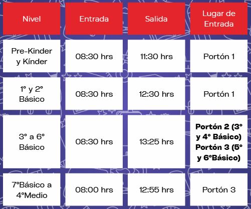 A partir del lunes 9 de marzo, el horario oficial del Colegio Andrés Bello será el siguiente: